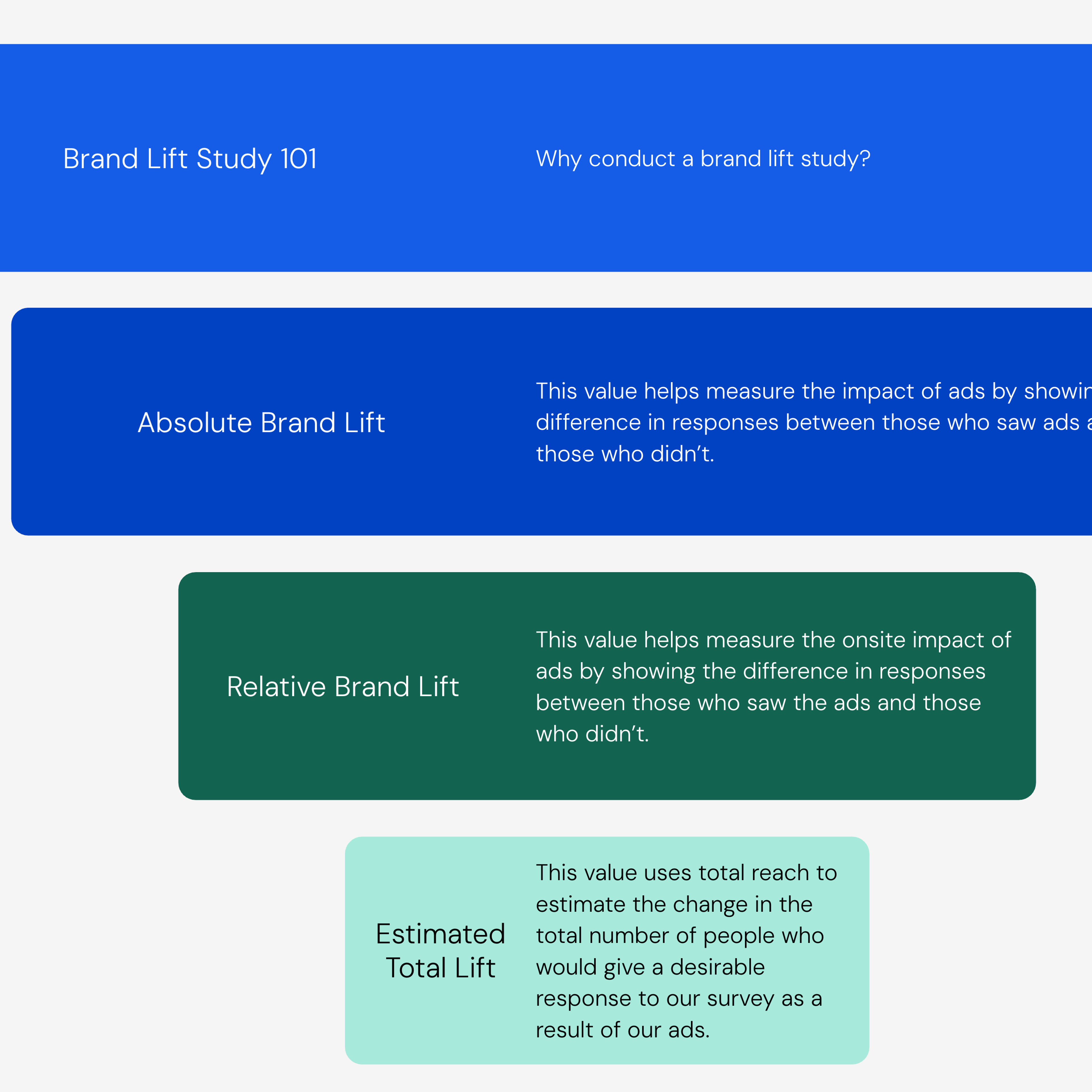 - Self-serve for sales/creative to test collateral and concepts.