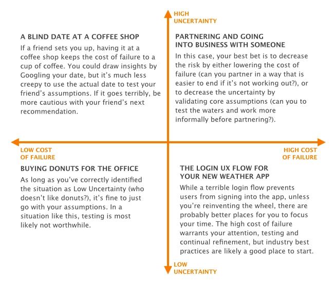 - Will the time and resources we spend testing assumptions be worth more than the costs of failure if our assumptions turn out to be inaccurate?